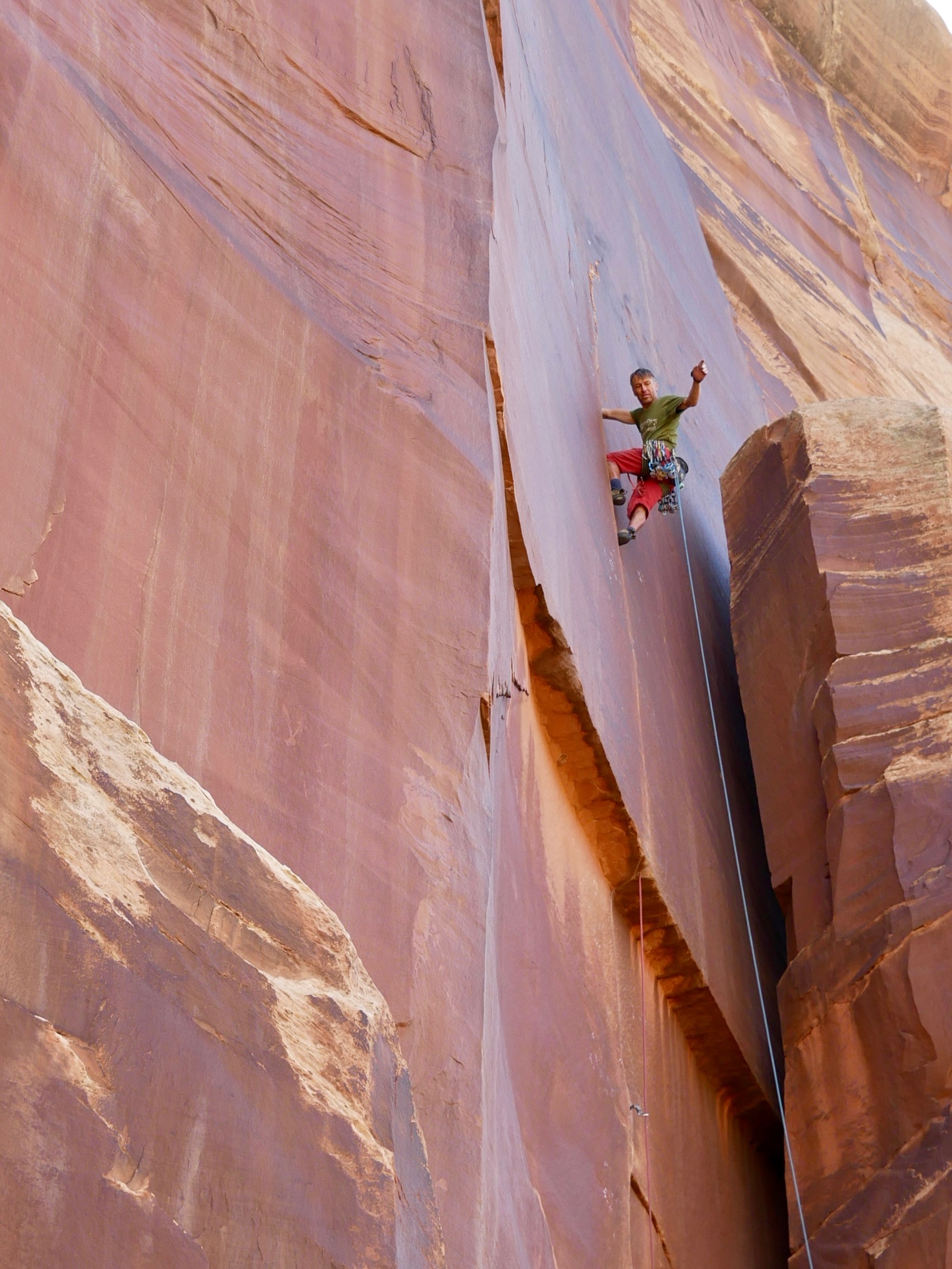 an den Sarca Walls in Mehrseillängen Routen unterwegs.