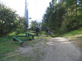 ![]() Etwas sportlicher Ausgleich am Trimmpfad zwischendurch. In Zermatt eine lange Mittagspause und wir nehmen eine weitere Person in unserer Gruppe auf. Die Anreise mit der Bahn bis Zermatt lief nach Schweizer Uhrwerk. |