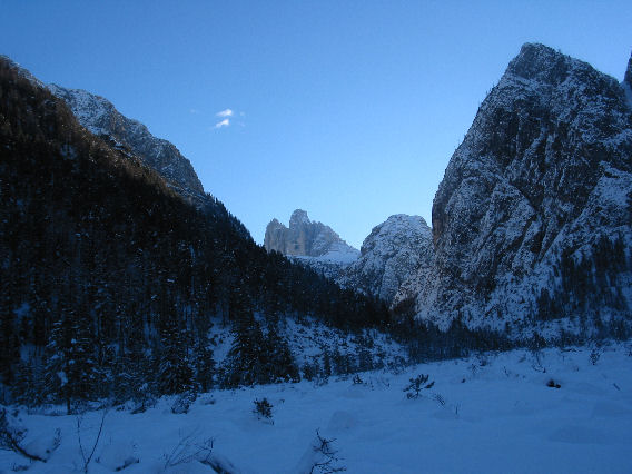 | Rienztal in den Sextener Dolomiten mit den Drei Zinnen In dieses Tal soll es gehen. ![]() |