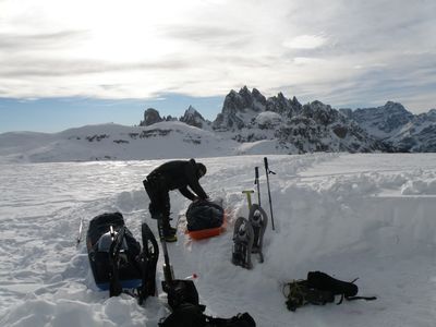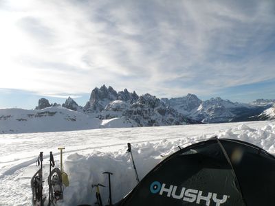Das Silvestercamp 2012 mit Blick zur Croda Rossa (Hohe Gaisl, 3146 m),