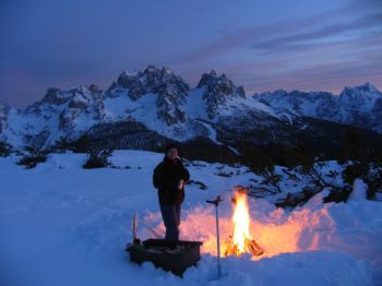 Es war vorauszusehen, dass unser Holzvorrat nur knapp zwei Stunden reichen würde. So sind wird erst einmal in den Schlafsack, um dann zu Mitternacht das Feuerwerk im Tal zu beobachten.