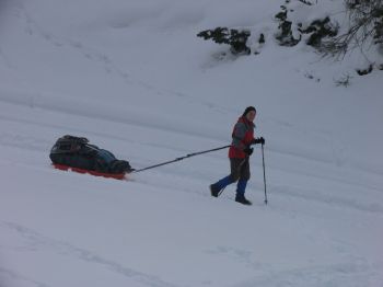 Die Anstrengungen des Transportes sollen nun belohnt werden. Thüringer Holz, selbst gefällt und gehackt und dann mit dem Pulka nach oben gezogen.