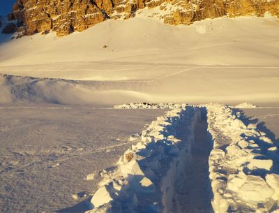 Der Eingang des verbesserten Winterraumes der Auronzo Hütte