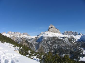 Cadini-Gruppe und die südlichen Ausläufer des Monte Cristallo. |