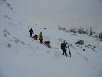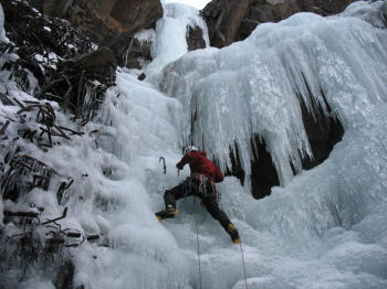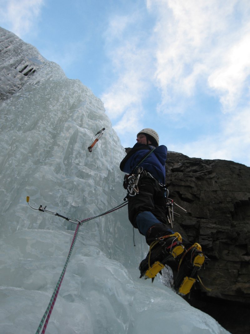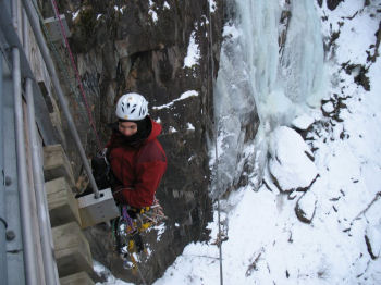 Abseilen - vor dem Eisklettern wird abgeseilt,