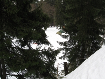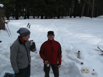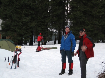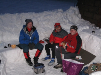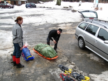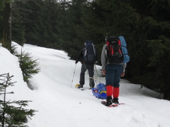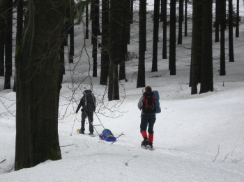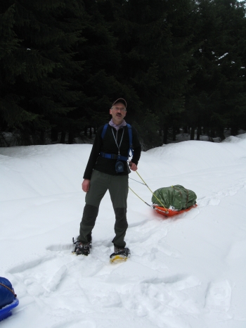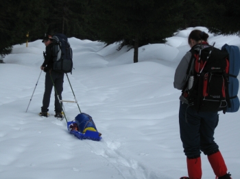 Zu Dritt ging es mit Schneeschuhen und Pulka los. |