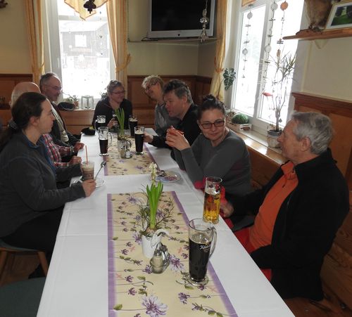 Samstag: Starker Schneefall bis 15 cm, Wanderung zur Schobse bei guten Winterbedingungen. Am Spätnachmittag einsetzendes Tauwetter mit Regen und Sturm.