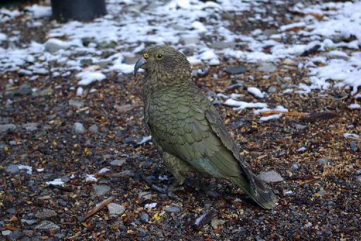 | Der Kea, einer von wenigen alpinen Papageien auf der Welt und nur in den höheren Lagen der Südinsel zu finden. Mag Scheibengummis von Autos, Zelte, Schuhe und alles Essbare in unbeobachteten Rücksäcken. Zeigt absolut keine Scheu und traut sich bis auch weniger als einen halben Meter heran. Zugegeben, keine Singvögel, aber jeden Morgen zuverlässig beim Wecken, leider schon um Sechs. Unsere Wanderschuhe mussten wir eines Abends in Sicherheit bringen. Ich habe von Geschichten gehört, in denen am nächsten Morgen Wanderschuhe komplett zerfetzt und zertreut vor der Hütte lagen - mitten im Hinterland sicher unangenehm. |