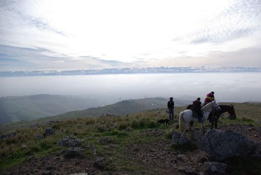 | Von einen der Gipfel der Port Hills aus Richtung Christchurch. Die Stadt selbst liegt unter dem Dunst wir standen etwas oberhalb. Das Besondere an dem Photo sind die Southern Alps, die man im Hintergrund vor Haufen-Wolken sehen kann. Nachdem wir im Nebel gestartet waren eine angenehme Überraschung. |