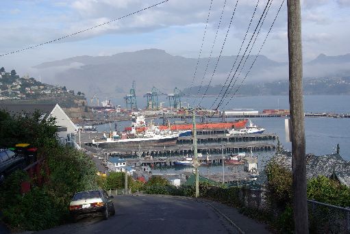 | Lyttelton. Eine typische Hafenstadt in der Nähe von Christchurch (mit dem längsten Straßentunnel Neuseelands verbunden - 1.9km). Expeditionen in die Antarktis starteten von hier aus. |